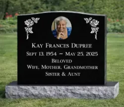 Flat markers sit flush with the ground for a clean, simple appearance. They are a popular, cost-effective choice and are accepted in nearly all cemeteries across the region.