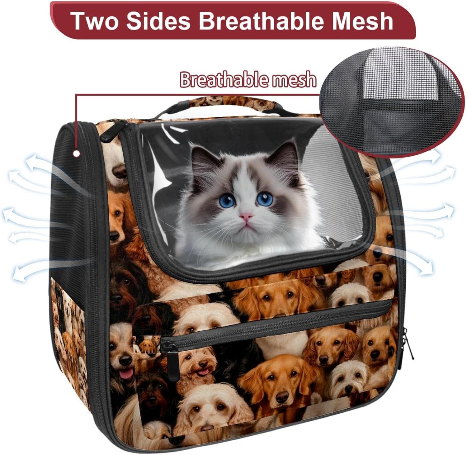 Well made: Cat Backpack Carrier is made from 900D oxford fabric, pp webbing, velvet, nylon, which is very sturdy, environmentally friendly and breathable. Not easily scratched by pet’s claws, pet backpack carrier is SAFETY & ANTI-SCRATCH. The back padding will give you a comfortable and breathable experience. Ventilated Backpack: With a breathable window in the front, this pet backpack allows cats to enjoy the sun without feeling stuffy. There are two side pockets and one big front pocket, and you can take foods or toy for your kitten pet. It is big enough for cat to turn around, and there are side pockets and hook holes, you will enjoy the greatest convenience when taking your cat out. Perfect size: Cat carrier is 15.75x9.84x13.78in/40x25x35cm. Fits most small/medium sized cat, dog, and pet. Quality fleece bed provide a comfortable place for your pet. Lightweight and easy to carry to all places. Built-in harnesses keep your naughty friends from escaping. Removable cosy mat for easier cleaning and let your pet enjoy it inside. Easy to carry: The adjustable shoulder strap of pet carrier bag help you hands-free carrying and makes it the most safe and convenient pet carrier bag for your travel. Seat belt design provide pets with safety protection throughout the trip. Pad protection keep your pets comfortable during travel. Unique Design: Innovative inside graphic design gives you a stereoscopic 3D visual experience. You also send us the photos you interest to make your unique dog or cat carrier. Pet bag is also a amazing gift for pet lover.