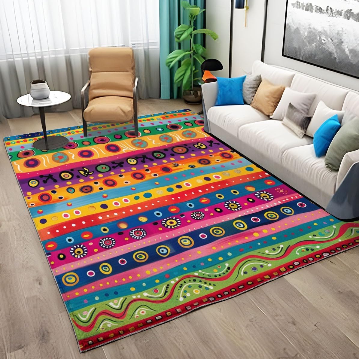 Eojctoy: Area Rugs - Your Ideal Partner for a Colorful Makeover to Your Life! Life begins with these interesting decorative rugs for your home. Welcome to our store! Features ① Soft and Comfortable Our rug is made of soft polyester, providing a comfortable feel underfoot. You can play with pets and children on the carpet, creating a strong family happiness atmosphere. ② Noise Reduction Soft, fluffy area rugs reduce noise, ensuring a quiet environment. Various unique printed rug are easy to match with any room—bedroom, living room, dining room, children's room, Playroom, or Home Office. ③ Non-Shedding Material Due to its tight weaving, this carpets is completely non-shedding, ensuring a clean and fuss-free environment. ④ Durable Edges Our washable rug features high-density stitched edges, making it stronger and more durable, ensuring a longer lifespan. ⑤ Non-Slip Backing This print area rug features a high-quality, non-slip TPR backing that keeps the rug stable, preventing dangerous movement and slipping. ⑥ Fade Resistant This beautiful area rug, with fade-resistant fibers, will look gorgeous even after many years of use and will remain a highlight of your home decor. ----- Therefore, what are you waiting for? Bring home our machine washable rug today and make your room more personalized. Enjoy unparalleled convenience! ★★ EXCELLENT CUSTOMER SERVICE: Our 4 x 6 ft area rugs not only provide soft and comfortable home decor but also come with a satisfaction guarantee. If you're not satisfied with your initial order, we're happy to offer a favorable solution. We're here to help whenever you need assistance.