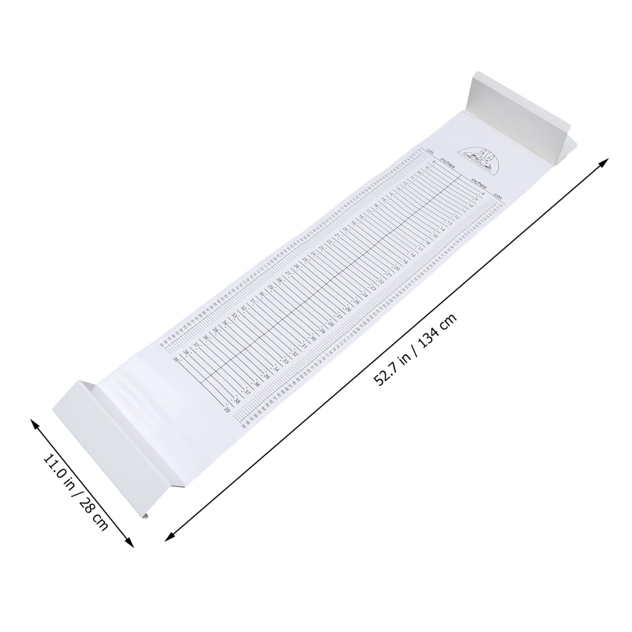 Package List 1 x Baby Height RulerFeatures - Size: 134.00X30.00X0.50cm/ 52.66X11.79X0.20in. - Color: White, black.Precision Dual Scale Measurement: Featuring clear markings in both centimeters and inches up to 52.75 inches, this baby measure height chart allows parents to track development accurately, the horizontal design serves as a reliable infantometer for recording growth without manual conversion errorsSkin Friendly and Safe Material: Crafted from non toxic environmental materials, this soft height chart for kids is gentle on delicate newborn skin, the smooth surface allows for direct contact during height measurement, ensuring a comfortable experience for fussy infants and active toddlersEasy to Use Design: Designed with a fixed headboard and a sliding foot positioner for stability, this toddler measuring tape mat simplifies the process of measuring a lying baby, the instruction graphics printed on the mat provide instant guidance for correct placement to ensure consistent resultsPortable and Space Saving: This lightweight growth chart rolls up compactly for easy storage in drawers or diaper bags, unlike a rigid growth chart for wall installation this portable measuring mat can be used anywhere, making it ideal for home visits or tracking stats while travelingWashable and Soft Surface: The waterproof material is easy to wipe clean after use, ensuring hygiene for repeated measurements, this durable baby height ruler resists wear and tear, making it a practical tool for monitoring physical progress from birth through the early years