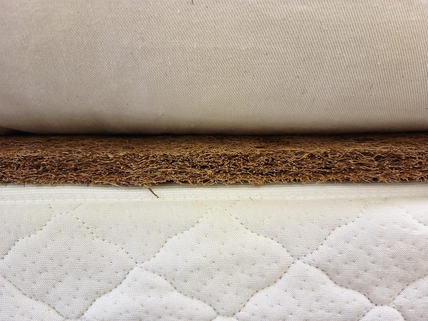 Our Coconut-coir Pad is a one inch mat made of coconut fiber (coir) infused with natural latex. The bed rug is porous and allows air circulation between the bottom of a mattress and a platform bed’s surface. It is strongly recommended for air flow under any mattress or futon on a solid-platform bed or for use as a breathable base for a traditional Shikibuton futon mattress. Inadequate air circulation under a mattress can cause moisture buildup. A Coconut-coir Pad is an ideal solution as it provides air circulation allowing for a cooler sleep surface.