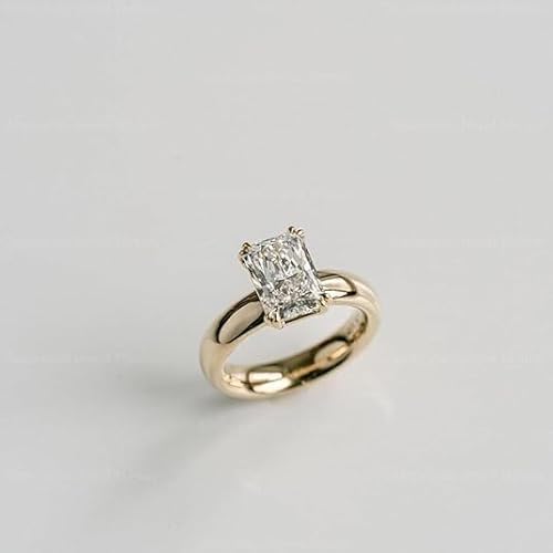 Elevate your commitment with this stunning 4.00Ct radiant cut engagement ring. Crafted with meticulous attention to detail, this ring features a brilliant lab-created diamond solitaire that captures light beautifully from every angle. The 14K yellow gold finish adds a warm, luxurious touch to the 925 sterling silver construction, creating a perfect balance of durability and elegance. The radiant cut, known for its sophisticated rectangular shape with cut corners, combines the elegant lines of an emerald cut with the brilliance of a round cut. This versatile design works beautifully as both a men's or women's engagement ring, making it an ideal choice for modern couples. The substantial 4.00Ct size creates a bold statement while maintaining refined proportions. Whether for a surprise proposal or choosing together, this ring represents both lasting beauty and contemporary style.