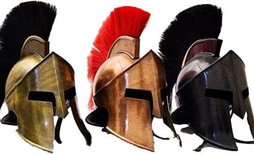 Description Medieval Greek Spartan Helmet 300 Movie King Leonidas Set OF 3 About this Item It is made of 18 gauge mild steel It come with inner liner, With Plume Full adult size wearable helmet Antique Brass, Copper & Black Finish Inner circumference : 72 cm, ear to ear : 21 cm, front to back : 33.5 cm Brand : R.K.GLOCAL ENTERPRISES