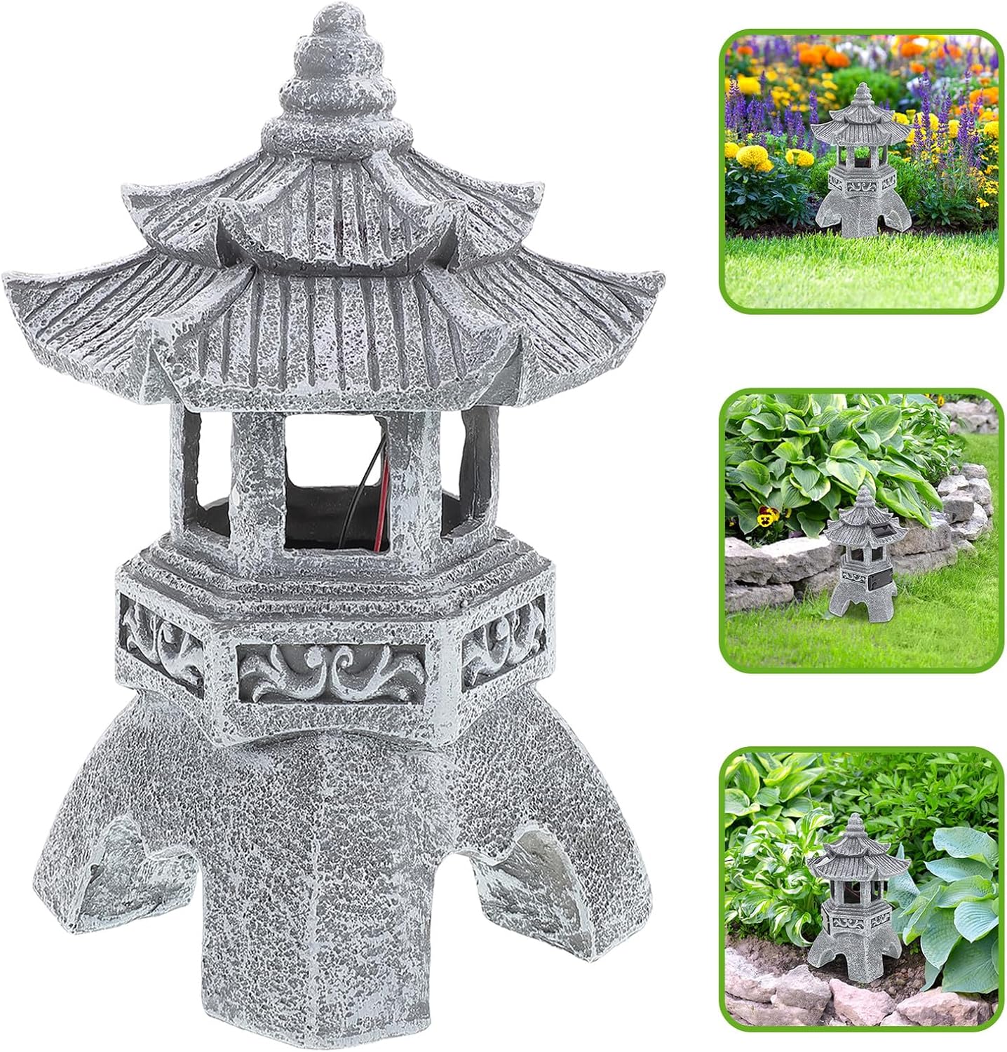 Package List 1 x solar lamp ornament Characteristics -Size: 26.00X15.00X15.00cm/10.22X5.89X5.89in -Note: Powered by solar energy Solar Court Lantern -Material: Resin -Product Info:Zen lotus lantern -Color: Grey - Solar panel power supply, charging during the day, light at night, the material is safe and durable. - This simple court lantern adornment is very suitable for decorating your garden, courtyard, lawn, etc decorative lantern. - It is beautiful and fashionable, add a sense of art to your home. Can be used for home decoration, Garden Solar Lamp Decor. - It is simple in design, but very practical to use, giving you a good decorative and visual experience outdoor solar lanterns. - The simple style makes people shine, suitable for scene decoration or , widely used in many scenes outdoor solar lamp.Goods Descriptionsolar lights The shape design is unique and delicate, very decorative.Solar Court Lantern This unique solar court lantern lamp is made of high-grade resin material, durable and beautiful.Outdoor Solar Court Lantern Suitable as a for friends.garden decoration solar chinese retro lamp It can be used as an home decoration